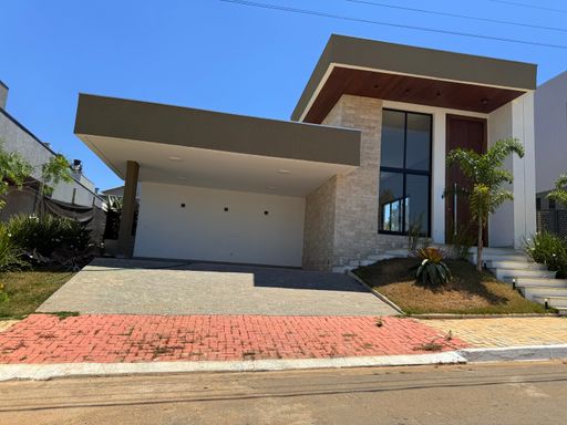 💫 CASA NOVA, LINEAR EM CONDOMÍNIO DE ALTO PADRÃO! . ✅ 04 quartos, sendo 01 suíte master, 01 suíte c/ closet, 02 semi suítes ; . ✅ Sala c/ Pé direito de 5,5m, despensa e área de serviço. . ✅ Área gourmet com churrasqueira e automação de som. . ✅ Borda da piscina em mármore branco (nao esquenta), cascata e iluminação interna ; . ✅ Garagem com ponto para carregador automotivo ; . ✅ Água quente por aquecimento solar, infra p/ aquecimento da piscina e para placas fotovoltaicas.