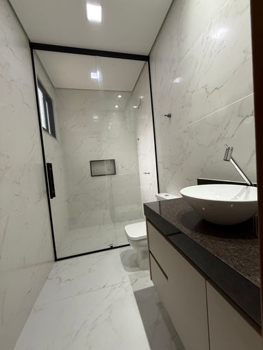 ✅ Banheiro social com armários planejados e box ;